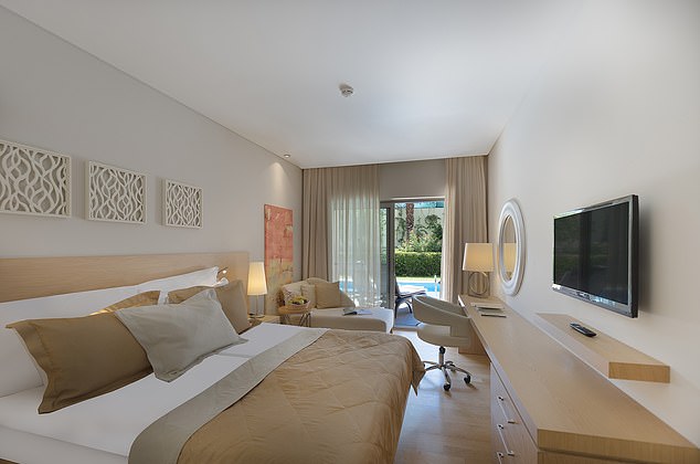 One visitor wrote on Google reviews: ‘One of the nicest hotels we have stayed in. We had a swim-up room and both the room and the swim-up area were immaculate. There was a bottle of wine in our room on arrival with a full mini bar and lots of water. All of the hotel facilities were immaculate.’